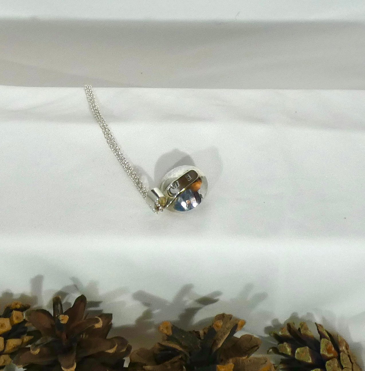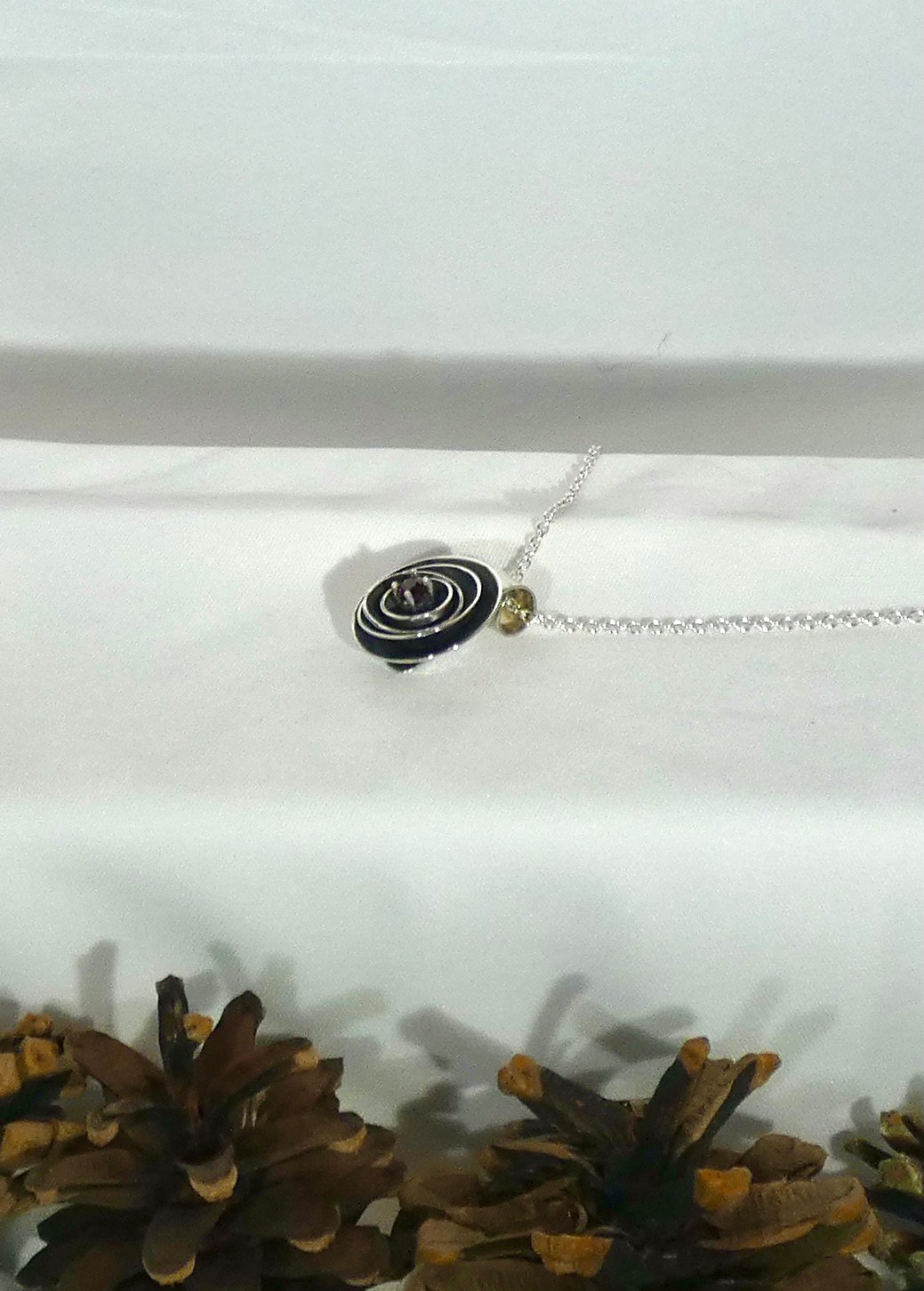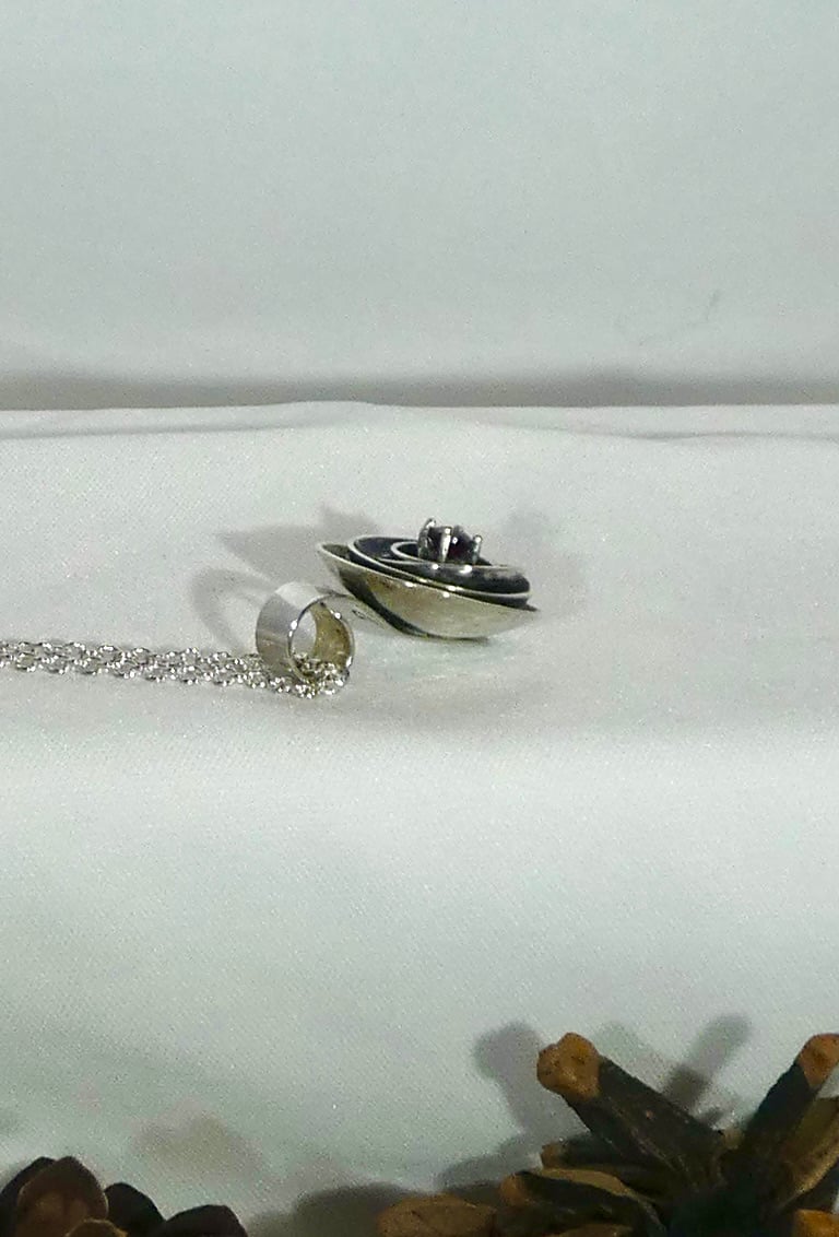 Sterling silver nested bowl pendant with garnet